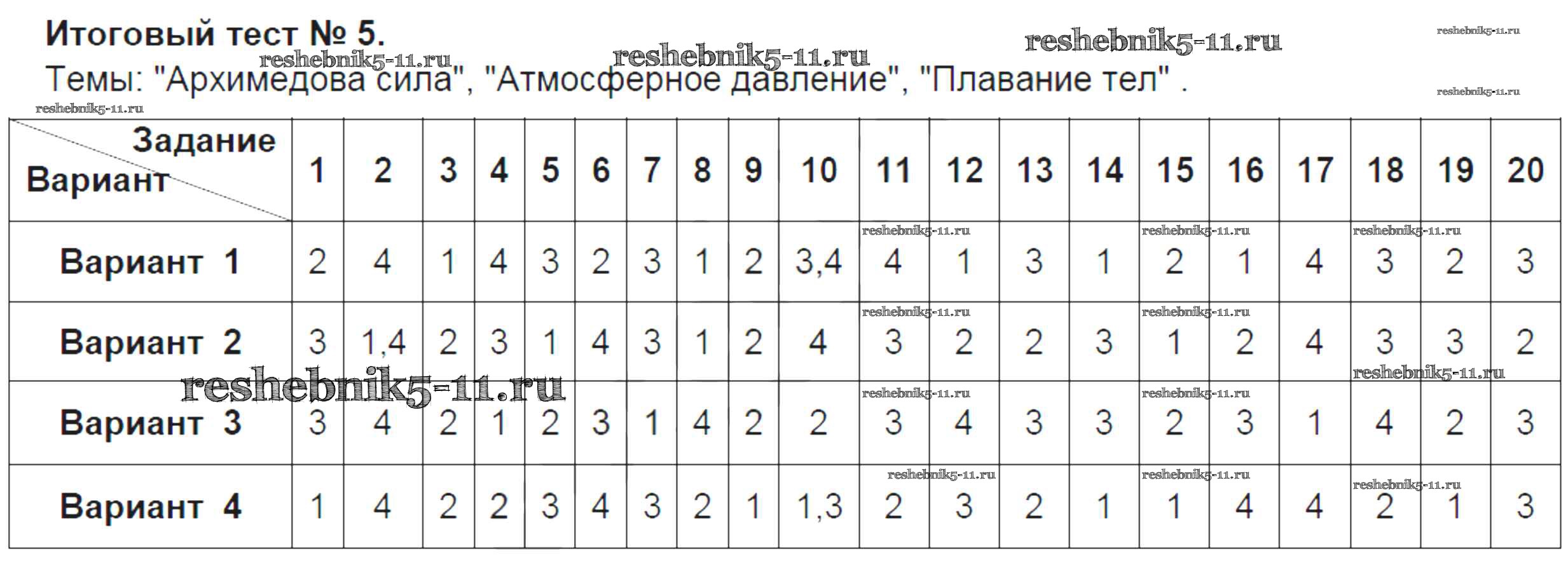 Готовая домашняя работа с ответами по Физике за 7 класс Чеботарева Тесты УМК Экзамен 2017 ФГОС - Часть 2 Итоговый тест №5