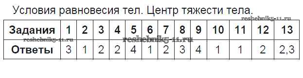 Готовая домашняя работа с ответами по Физике за 7 класс Чеботарева Тесты УМК Экзамен 2017 ФГОС - Глава 4. Работа и мощность Центр тяжести тела. Условия равновесия тел