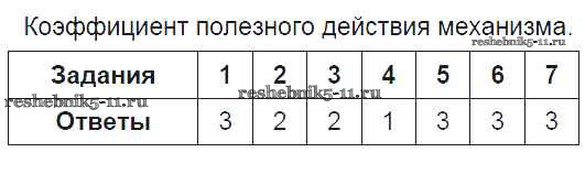 Готовая домашняя работа с ответами по Физике за 7 класс Чеботарева Тесты УМК Экзамен 2017 ФГОС - Глава 4. Работа и мощность КПД механизма