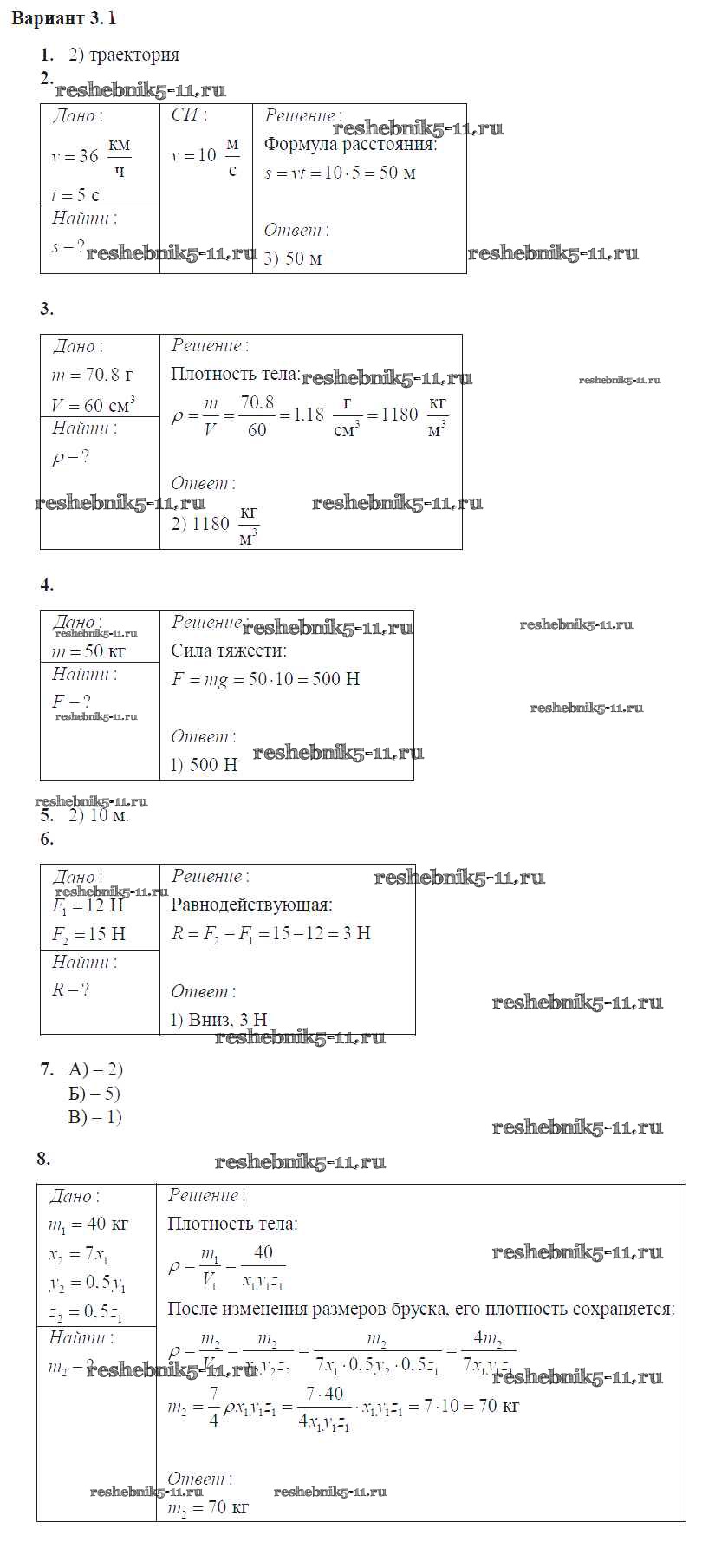Решебник / контрольная работа / глава 2. взаимодействие тел / вар. 3