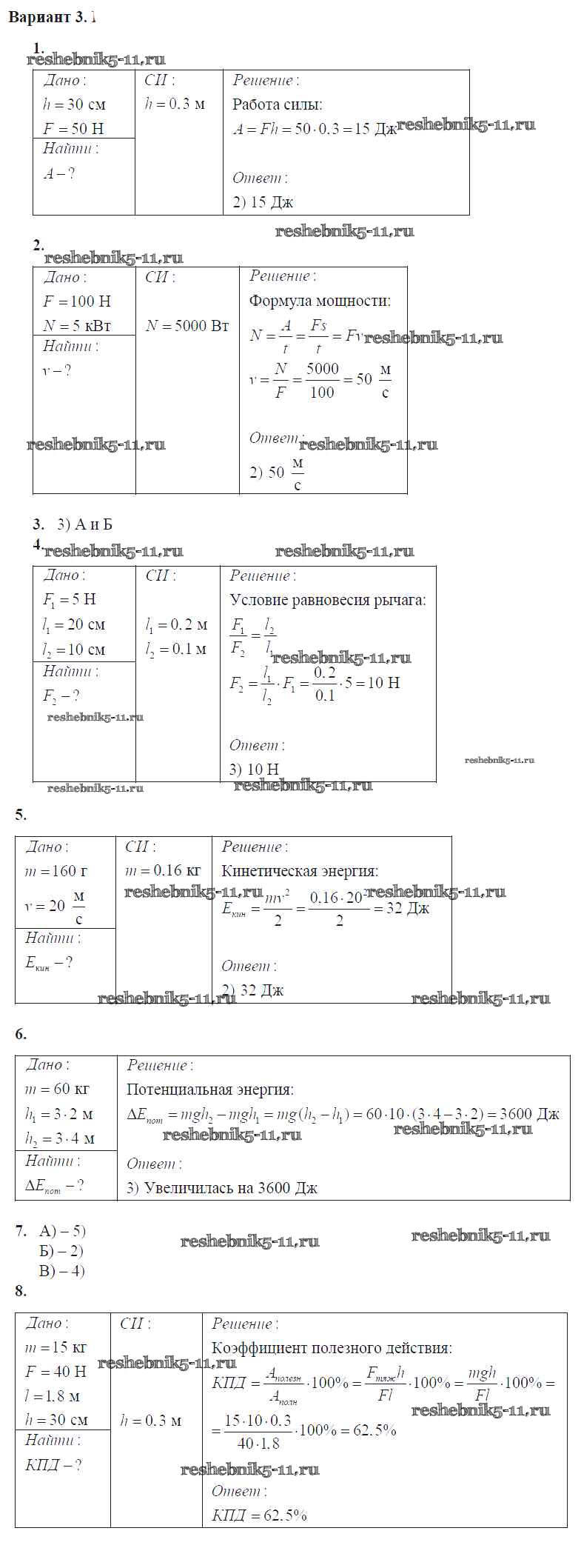 Готовая домашняя работа с ответами по Физике за 7 класс Громцева Контрольные и самостоятельные работы УМК Экзамен 2020 ФГОС - Глава 4. Работа и мощность. Энергия Вар. 3