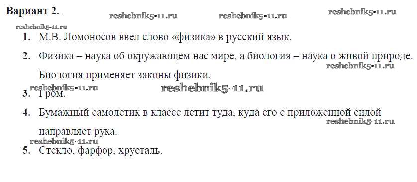 Готовая домашняя работа с ответами по Физике за 7 класс Громцева Контрольные и самостоятельные работы УМК Экзамен 2020 ФГОС - СР №1. Что изучает физика. Некоторые физические термины. Наблюдения и опыты Вар. 2
