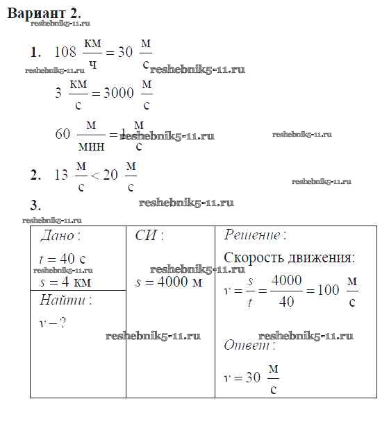 Решебник / самостоятельная работа / ср №11. скорость. единицы скорости / вар. 2