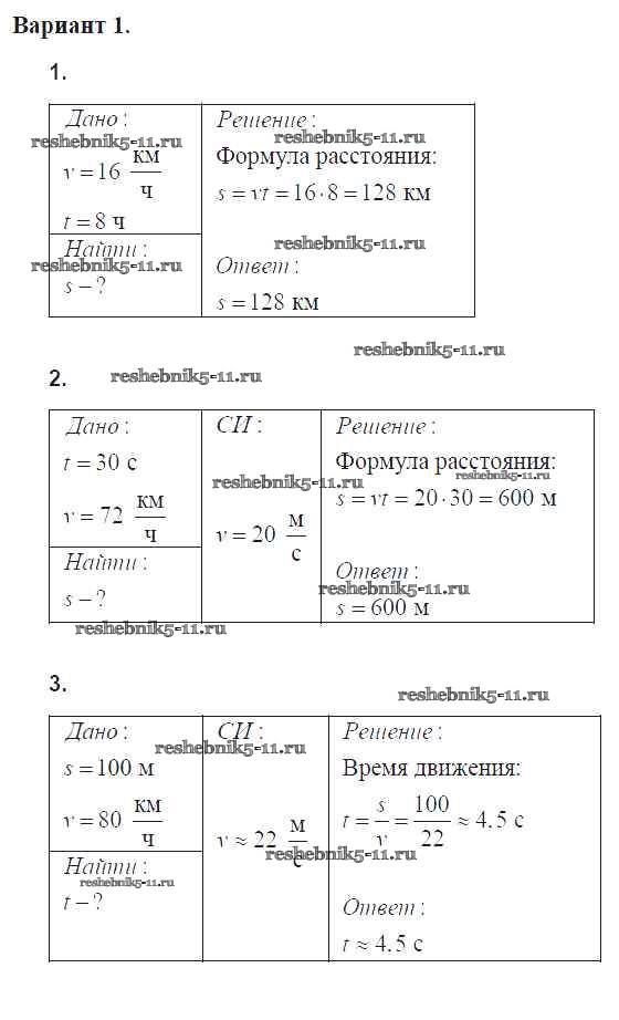 Решебник / самостоятельная работа / ср №12. расчет пути и времени движения / вар. 1