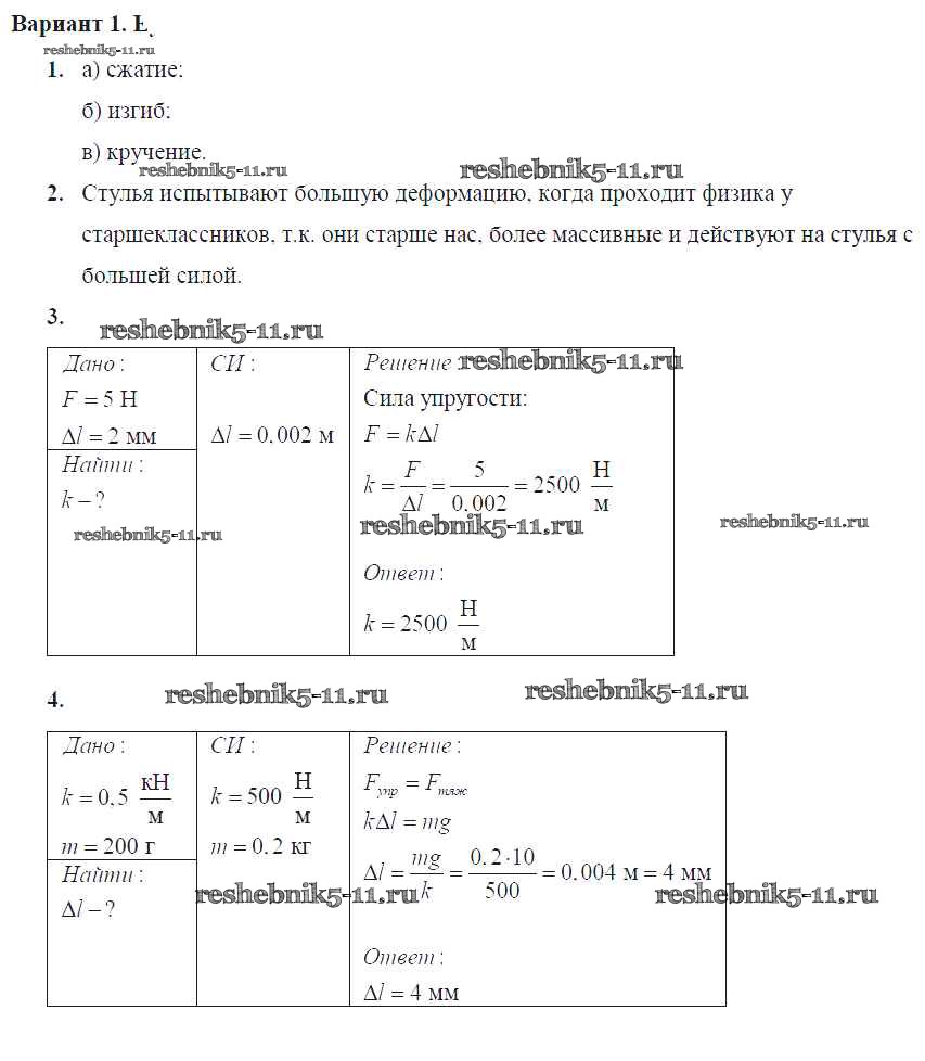 Готовая домашняя работа с ответами по Физике за 7 класс Громцева Контрольные и самостоятельные работы УМК Экзамен 2020 ФГОС - СР №18. Сила упругости. Закон Гука Вар. 1