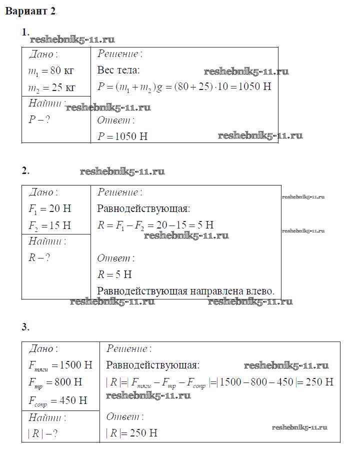 Решебник / самостоятельная работа / ср №21. сложение сил направленных по одной прямой. равнодействующая сил / вар. 2