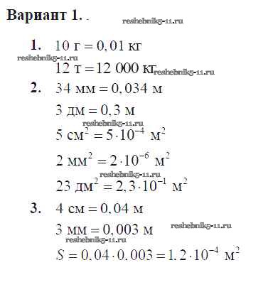 Готовая домашняя работа с ответами по Физике за 7 класс Громцева Контрольные и самостоятельные работы УМК Экзамен 2020 ФГОС - СР №23. Единицы измерения массы, длины и площади СИ Вар. 1