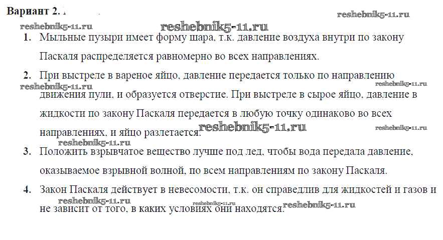 Готовая домашняя работа с ответами по Физике за 7 класс Громцева Контрольные и самостоятельные работы УМК Экзамен 2020 ФГОС - СР №27. Передача давления жидкостями и газами. Закон Паскаля Вар. 2