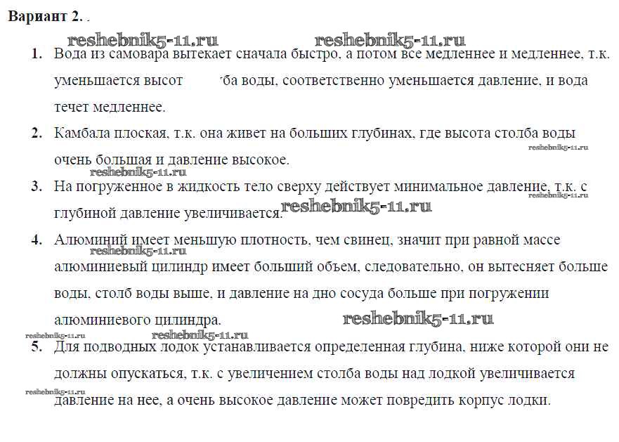 Готовая домашняя работа с ответами по Физике за 7 класс Громцева Контрольные и самостоятельные работы УМК Экзамен 2020 ФГОС - СР №28. Давление в жидкости и газе Вар. 2
