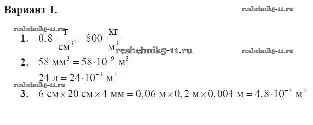 Готовая домашняя работа с ответами по Физике за 7 класс Громцева Контрольные и самостоятельные работы УМК Экзамен 2020 ФГОС - СР №36. Единицы измерения плотности и объема СИ Вар. 1