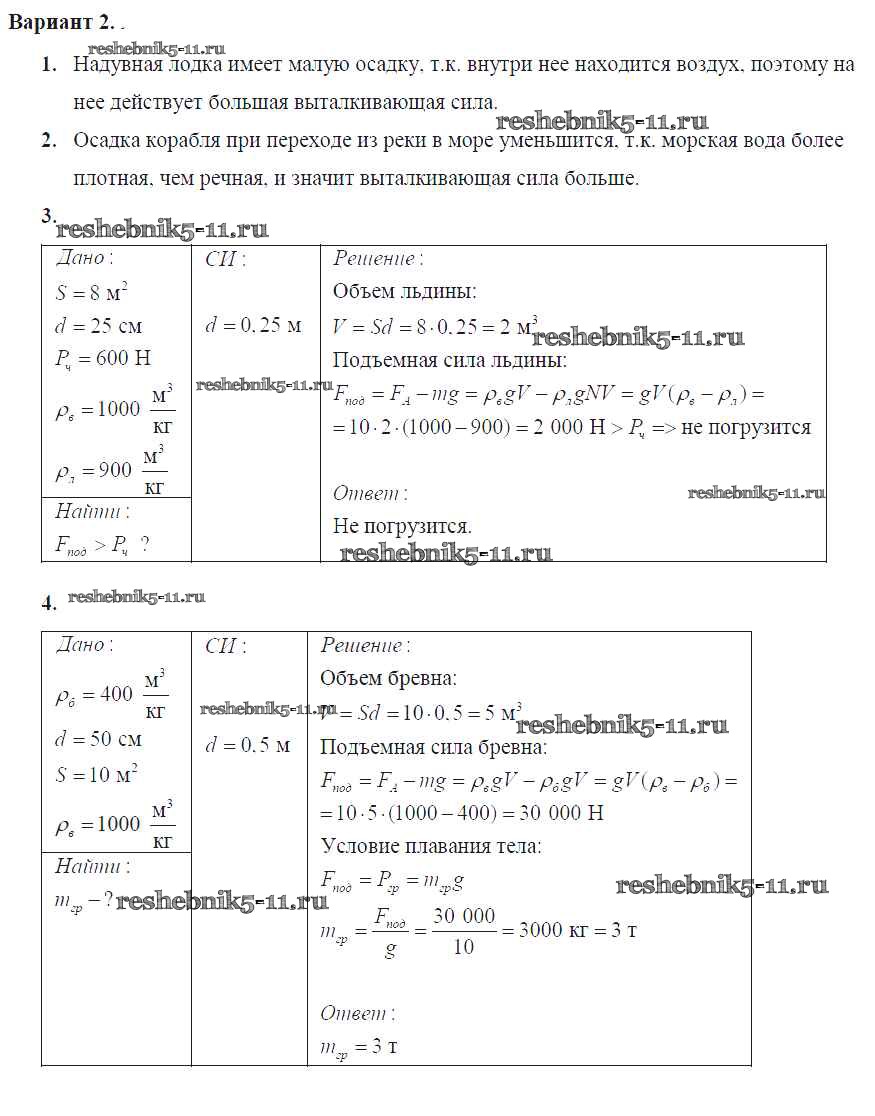 Готовая домашняя работа с ответами по Физике за 7 класс Громцева Контрольные и самостоятельные работы УМК Экзамен 2020 ФГОС - СР №39. Плавание судов Вар. 2