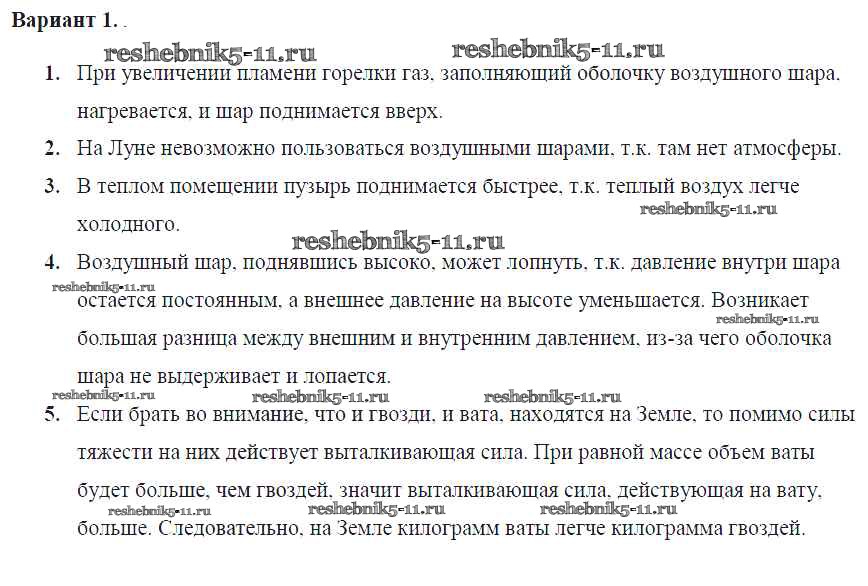 Готовая домашняя работа с ответами по Физике за 7 класс Громцева Контрольные и самостоятельные работы УМК Экзамен 2020 ФГОС - СР №40. Воздухоплавание Вар. 1