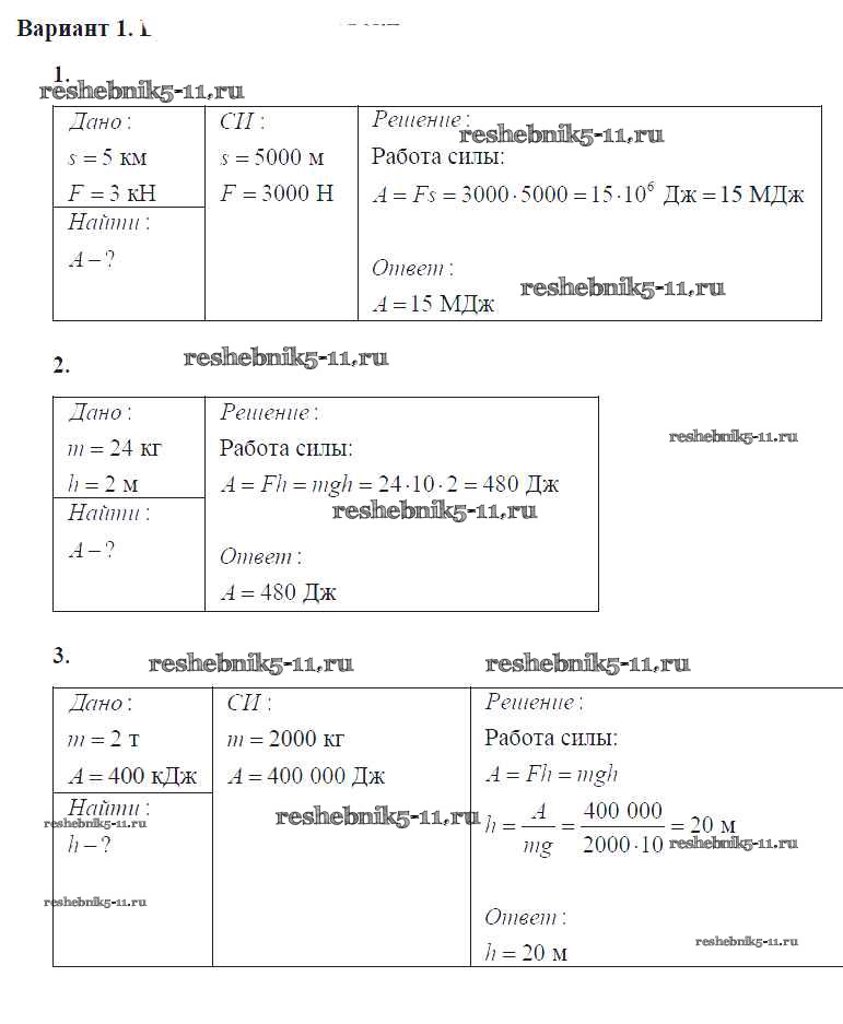 Готовая домашняя работа с ответами по Физике за 7 класс Громцева Контрольные и самостоятельные работы УМК Экзамен 2020 ФГОС - СР №41. Механическая работа. Единицы работы Вар. 1