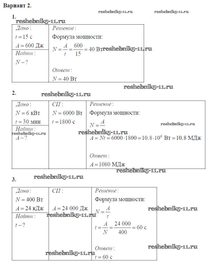 Решебник / самостоятельная работа / ср №42. мощность. единицы мощности / вар. 2