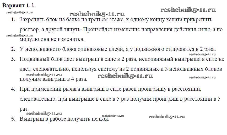 Готовая домашняя работа с ответами по Физике за 7 класс Громцева Контрольные и самостоятельные работы УМК Экзамен 2020 ФГОС - СР №46. Применение правила равновесия рычага к блоку. Золотое правило механики Вар. 1