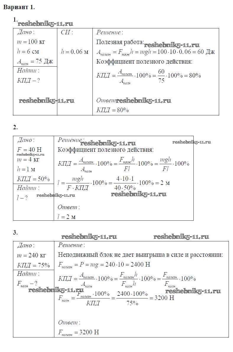 Готовая домашняя работа с ответами по Физике за 7 класс Громцева Контрольные и самостоятельные работы УМК Экзамен 2020 ФГОС - СР №48. Коэффициент полезного действия механизма Вар. 1