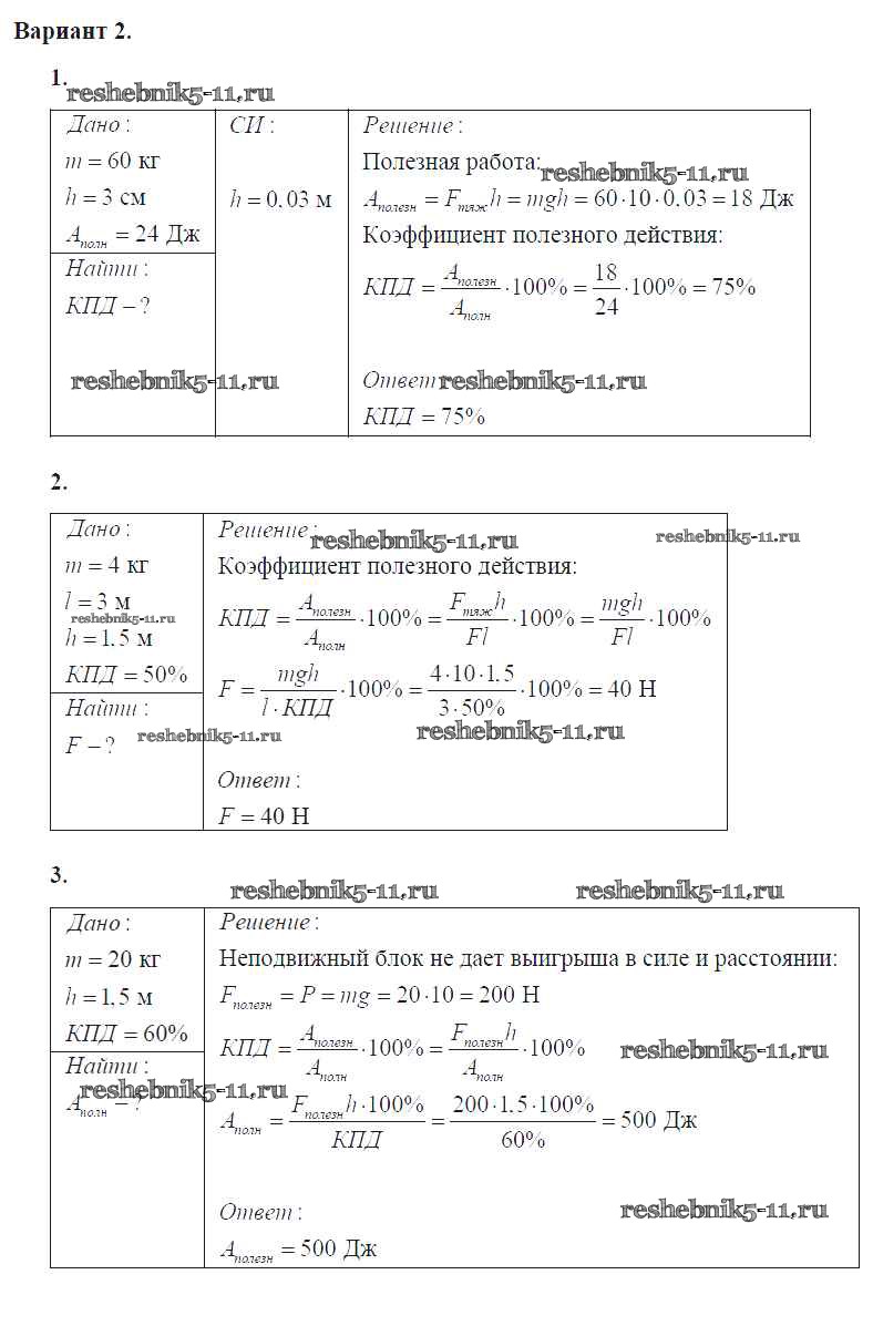 Решебник / самостоятельная работа / ср №48. коэффициент полезного действия механизма / вар. 2