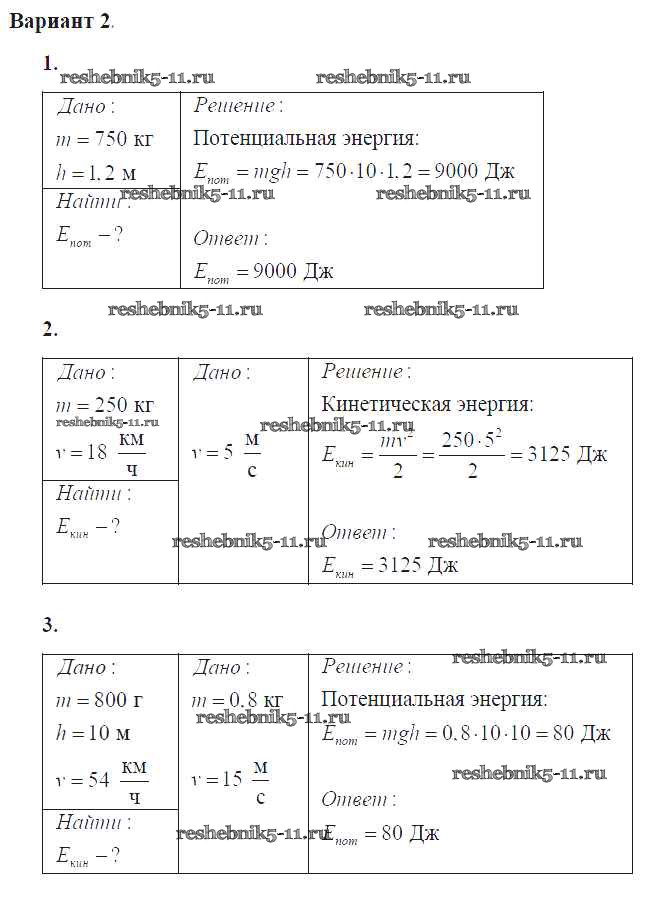 Решебник / самостоятельная работа / ср №50. виды механической энергии / вар. 2