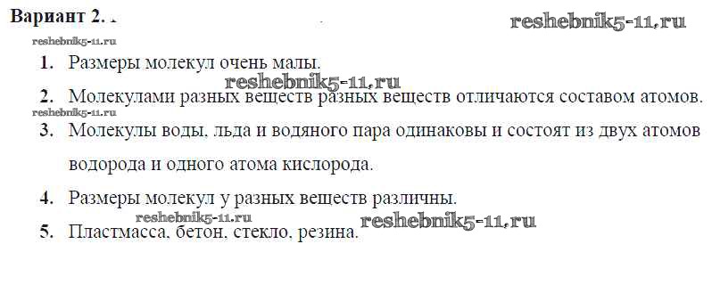 Готовая домашняя работа с ответами по Физике за 7 класс Громцева Контрольные и самостоятельные работы УМК Экзамен 2020 ФГОС - СР №6. Молекулы Вар. 2
