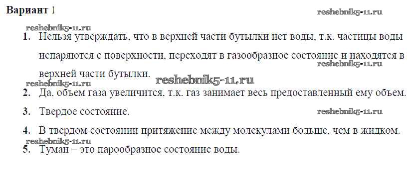 Решебник / самостоятельная работа / ср №9. агрегатные состояния вещества. Различие в молекулярном строении твердых тел, жидкостей и газов / вар. 1