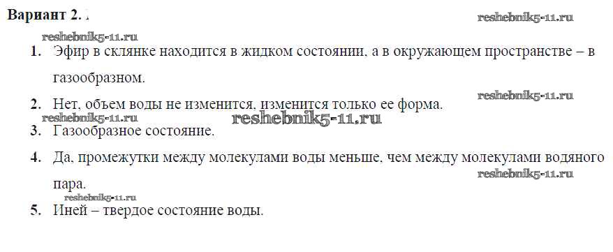 Готовая домашняя работа с ответами по Физике за 7 класс Громцева Контрольные и самостоятельные работы УМК Экзамен 2020 ФГОС - СР №9. Агрегатные состояния вещества. Различие в молекулярном строении твердых тел, жидкостей и газов Вар. 2