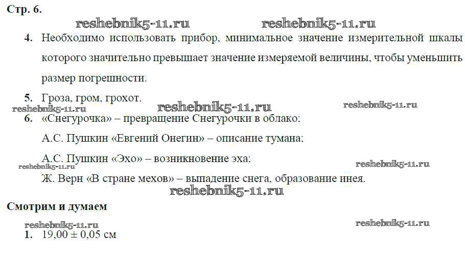 Готовая домашняя работа с ответами по Физике за 7 класс Артеменков, Белага, Воронцова, Ломаченков, Панебратцев Тетрадь-тренажер Сферы Просвещение 2016 ФГОС - Глава 1. Физика и мир, в котором мы живем стр.6