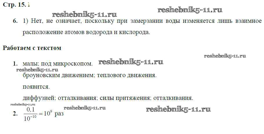 Готовая домашняя работа с ответами по Физике за 7 класс Артеменков, Белага, Воронцова, Ломаченков, Панебратцев Тетрадь-тренажер Сферы Просвещение 2016 ФГОС - Глава 2. Строение вещетва стр.15