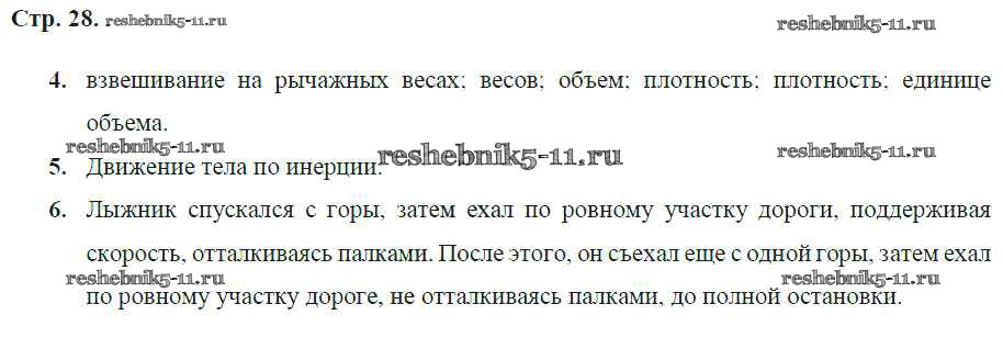 Готовая домашняя работа с ответами по Физике за 7 класс Артеменков, Белага, Воронцова, Ломаченков, Панебратцев Тетрадь-тренажер Сферы Просвещение 2016 ФГОС - Глава 3. Движение, взаимодействие, масса стр.28