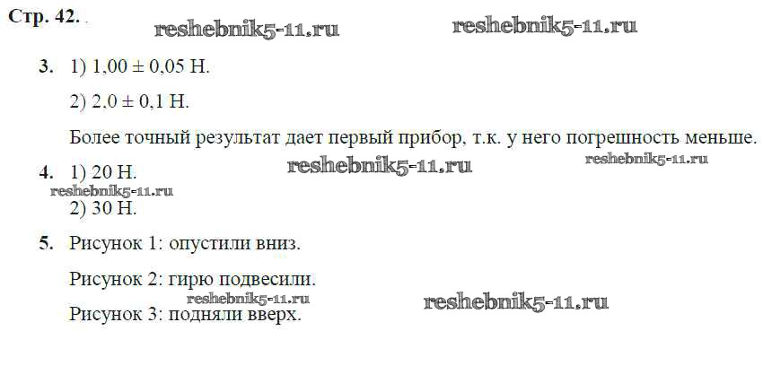 Готовая домашняя работа с ответами по Физике за 7 класс Артеменков, Белага, Воронцова, Ломаченков, Панебратцев Тетрадь-тренажер Сферы Просвещение 2016 ФГОС - Глава 4. Силы вокруг нас стр.42