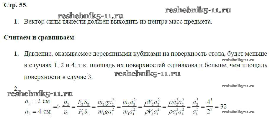 Готовая домашняя работа с ответами по Физике за 7 класс Артеменков, Белага, Воронцова, Ломаченков, Панебратцев Тетрадь-тренажер Сферы Просвещение 2016 ФГОС - Глава 5. Давление твёрдых тел, жидкостей и газов стр.55
