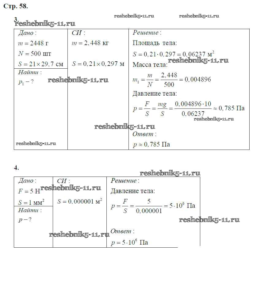 Готовая домашняя работа с ответами по Физике за 7 класс Артеменков, Белага, Воронцова, Ломаченков, Панебратцев Тетрадь-тренажер Сферы Просвещение 2016 ФГОС - Глава 5. Давление твёрдых тел, жидкостей и газов стр.58