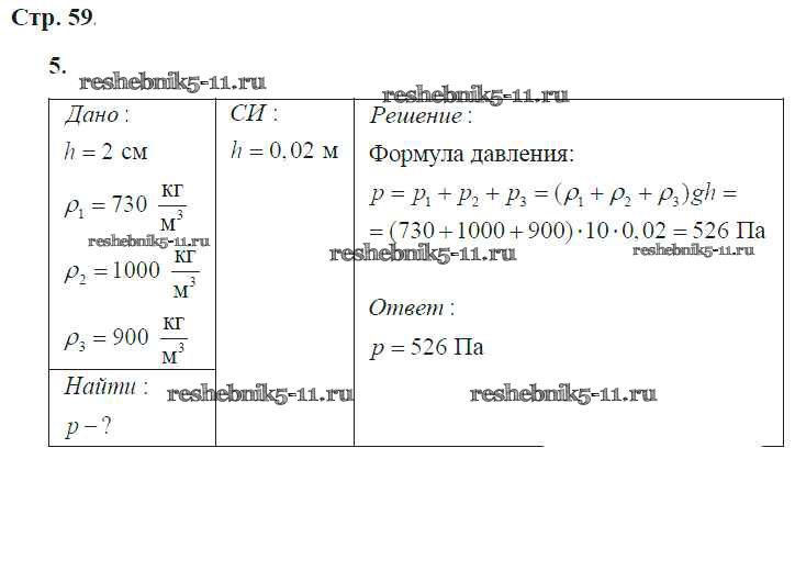 Готовая домашняя работа с ответами по Физике за 7 класс Артеменков, Белага, Воронцова, Ломаченков, Панебратцев Тетрадь-тренажер Сферы Просвещение 2016 ФГОС - Глава 5. Давление твёрдых тел, жидкостей и газов стр.59