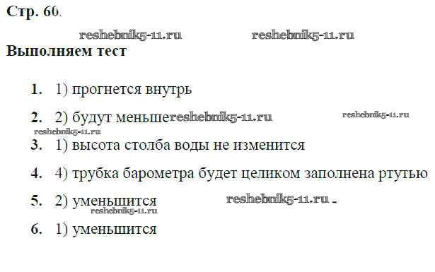 Готовая домашняя работа с ответами по Физике за 7 класс Артеменков, Белага, Воронцова, Ломаченков, Панебратцев Тетрадь-тренажер Сферы Просвещение 2016 ФГОС - Глава 6. Атмосфера и атмосферное давление стр.60