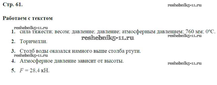 Готовая домашняя работа с ответами по Физике за 7 класс Артеменков, Белага, Воронцова, Ломаченков, Панебратцев Тетрадь-тренажер Сферы Просвещение 2016 ФГОС - Глава 6. Атмосфера и атмосферное давление стр.61