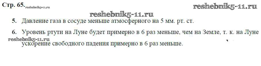 Готовая домашняя работа с ответами по Физике за 7 класс Артеменков, Белага, Воронцова, Ломаченков, Панебратцев Тетрадь-тренажер Сферы Просвещение 2016 ФГОС - Глава 6. Атмосфера и атмосферное давление стр.65