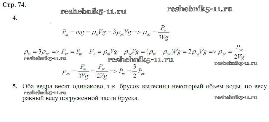 Готовая домашняя работа с ответами по Физике за 7 класс Артеменков, Белага, Воронцова, Ломаченков, Панебратцев Тетрадь-тренажер Сферы Просвещение 2016 ФГОС - Глава 7. Закон Архимеда. Плавание тел стр.74