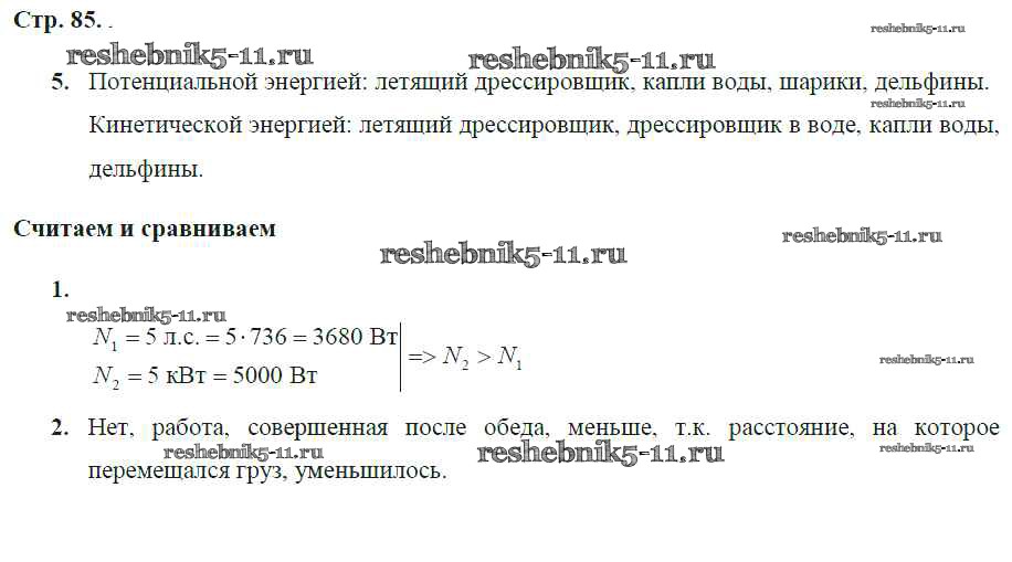 Готовая домашняя работа с ответами по Физике за 7 класс Артеменков, Белага, Воронцова, Ломаченков, Панебратцев Тетрадь-тренажер Сферы Просвещение 2016 ФГОС - Глава 8. Работа, мощность, энергия стр.85