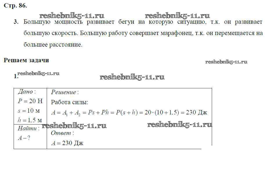 Готовая домашняя работа с ответами по Физике за 7 класс Артеменков, Белага, Воронцова, Ломаченков, Панебратцев Тетрадь-тренажер Сферы Просвещение 2016 ФГОС - Глава 8. Работа, мощность, энергия стр.86