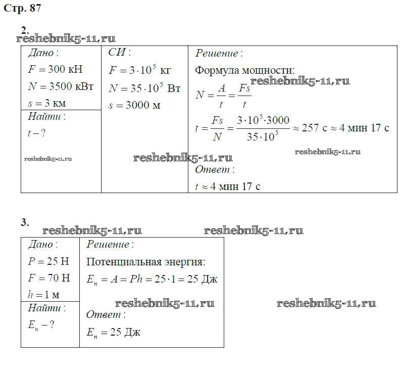 Готовая домашняя работа с ответами по Физике за 7 класс Артеменков, Белага, Воронцова, Ломаченков, Панебратцев Тетрадь-тренажер Сферы Просвещение 2016 ФГОС - Глава 8. Работа, мощность, энергия стр.87