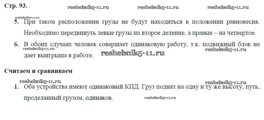 Готовая домашняя работа с ответами по Физике за 7 класс Артеменков, Белага, Воронцова, Ломаченков, Панебратцев Тетрадь-тренажер Сферы Просвещение 2016 ФГОС - Глава 9. Простые механизмы. "Золотое правило" механики стр.93