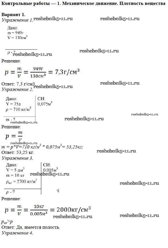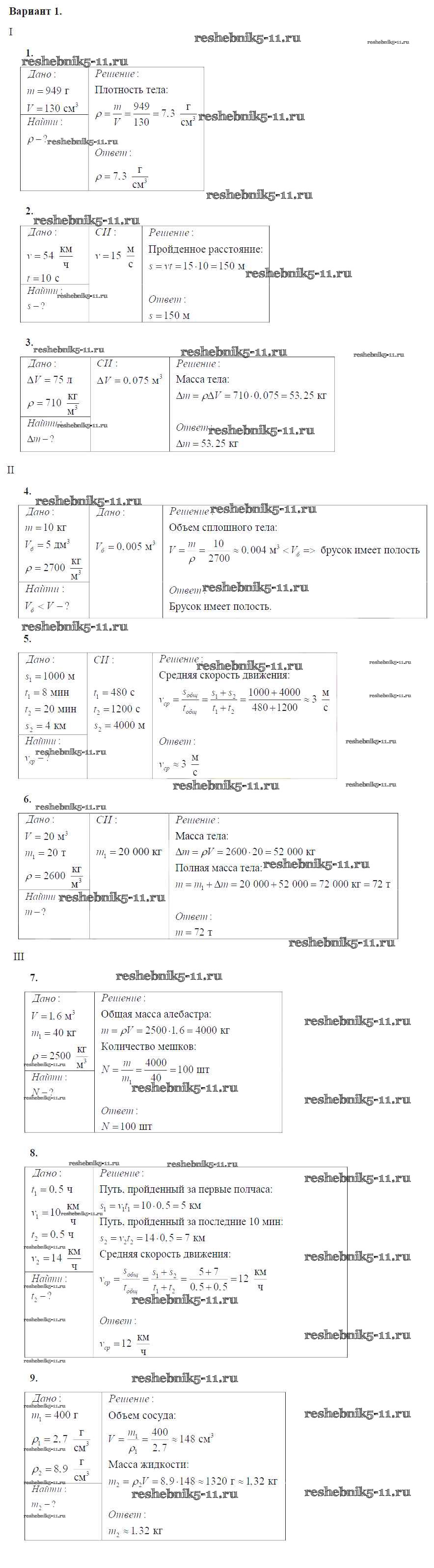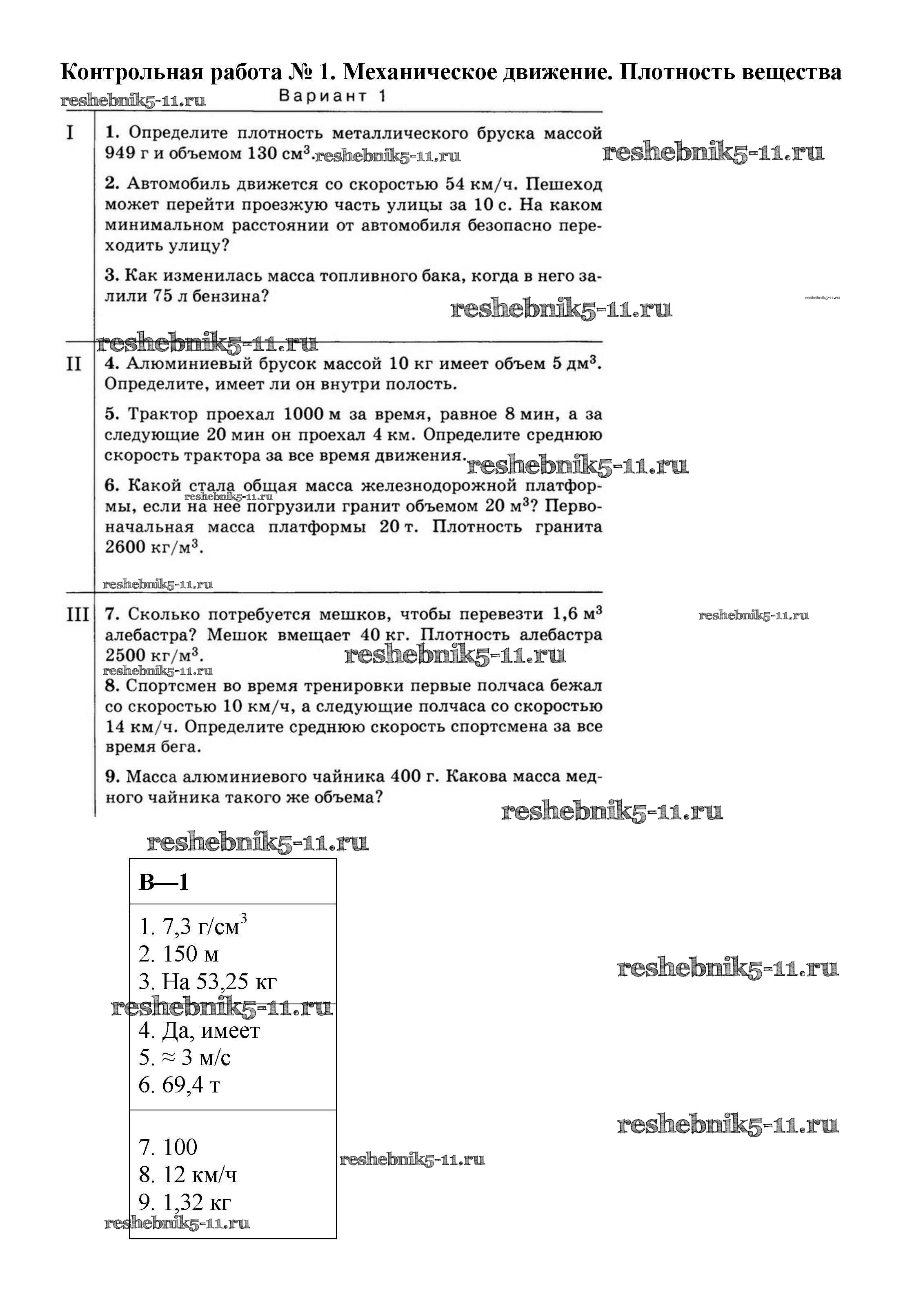 Готовая домашняя работа с ответами по Физике за 7 класс Марон Дидактические материалы Вертикаль Дрофа 2019 ФГОС - КР №-1. Механическое движение. Плотность вещества Вариант №1