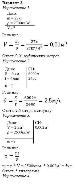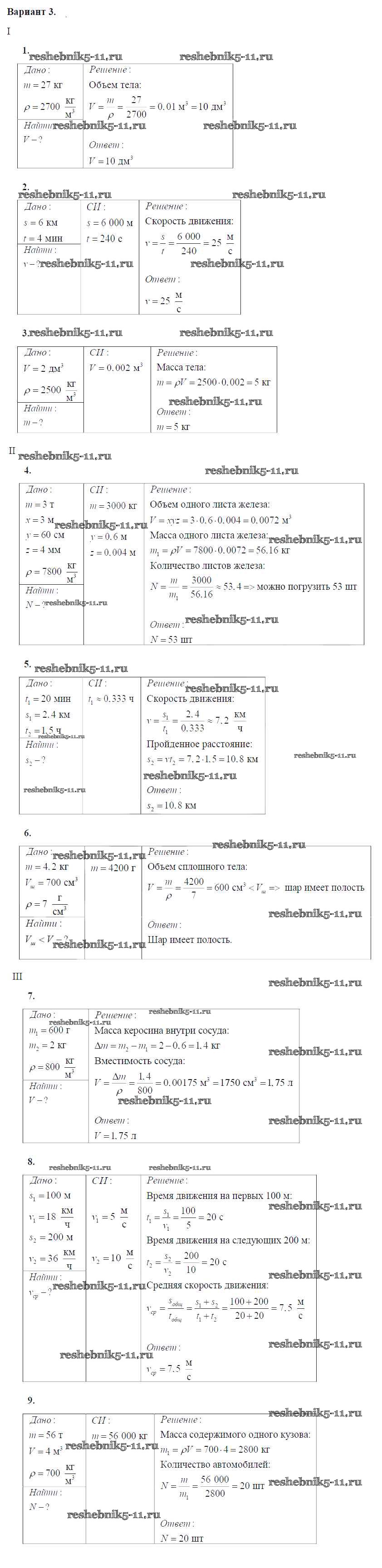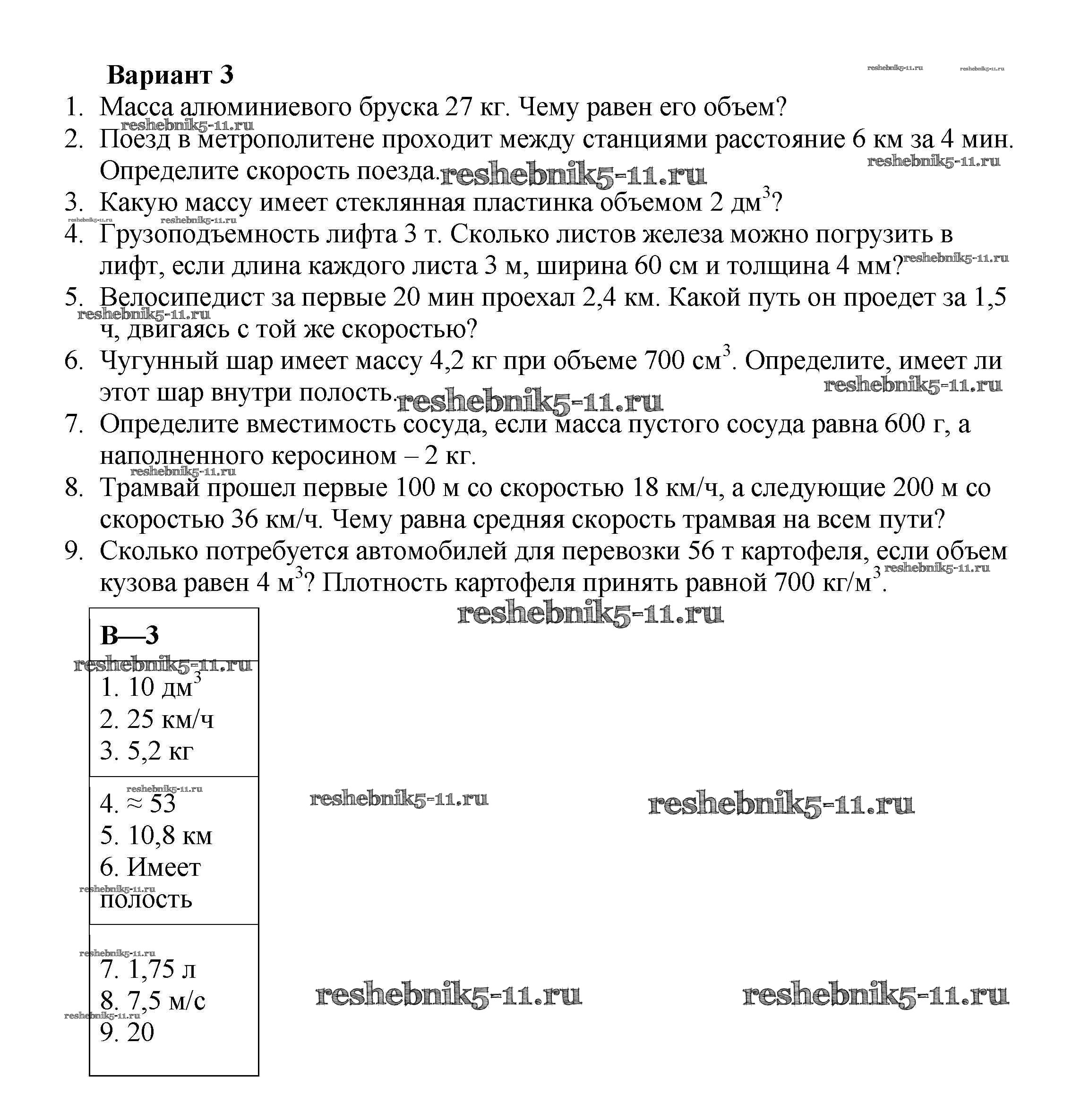 Готовая домашняя работа с ответами по Физике за 7 класс Марон Дидактические материалы Вертикаль Дрофа 2019 ФГОС - КР №-1. Механическое движение. Плотность вещества Вариант №3