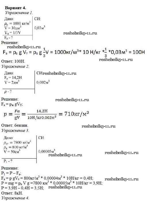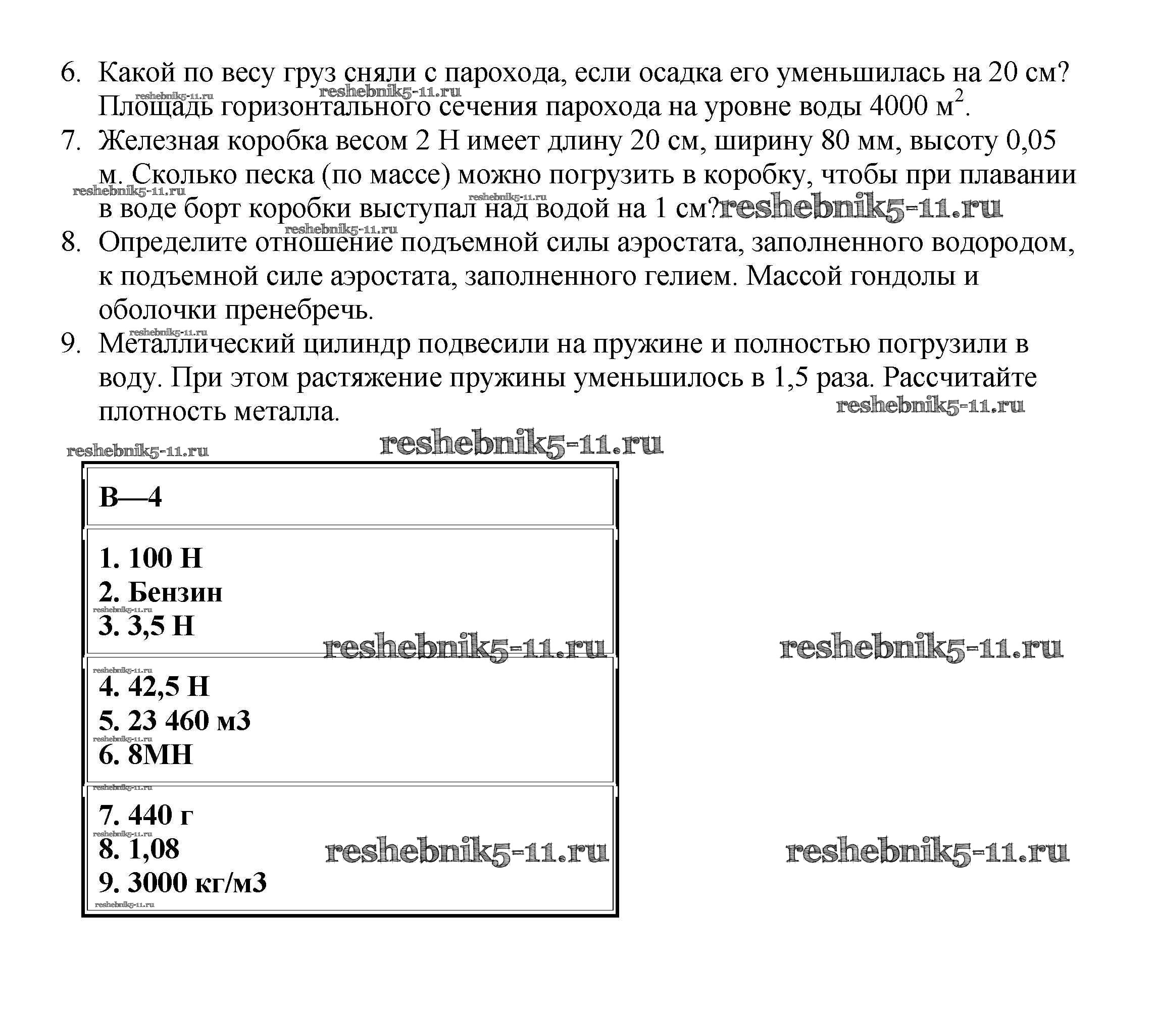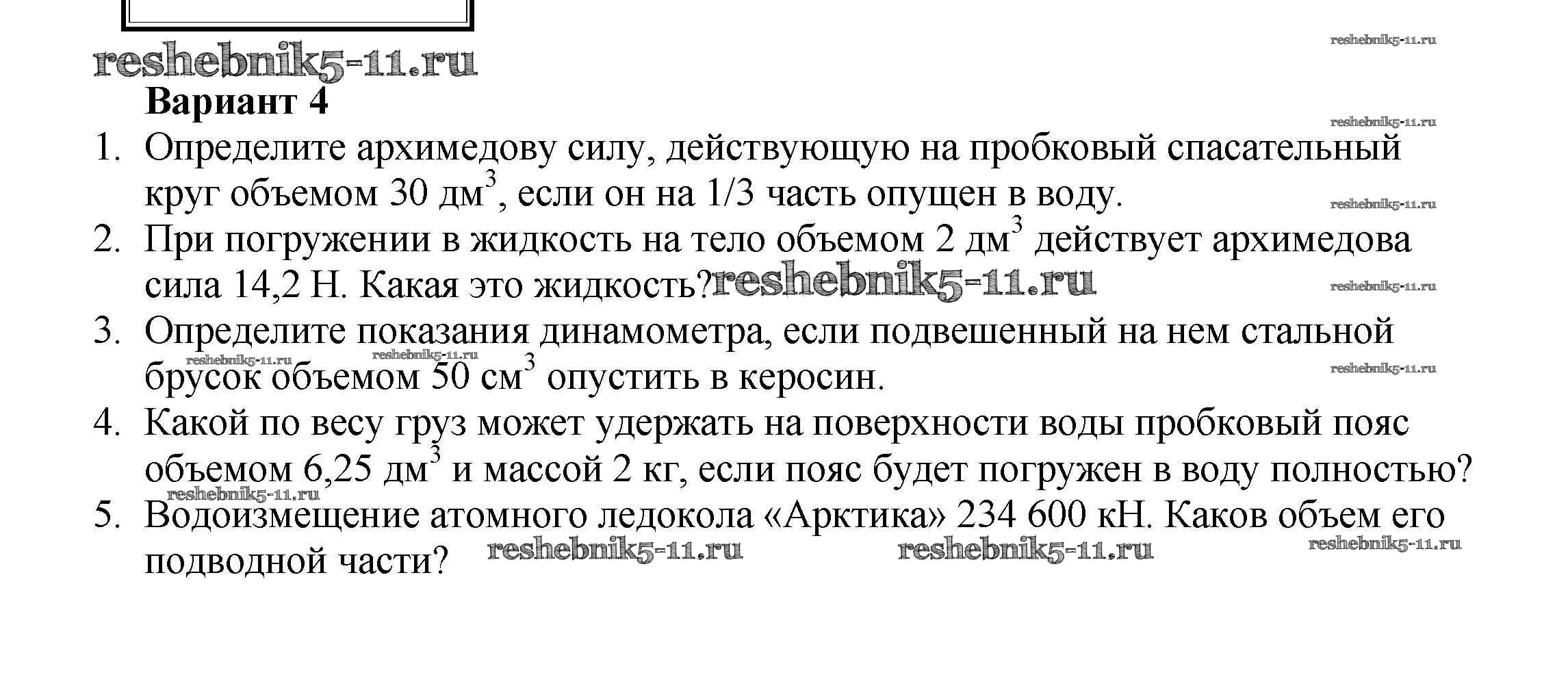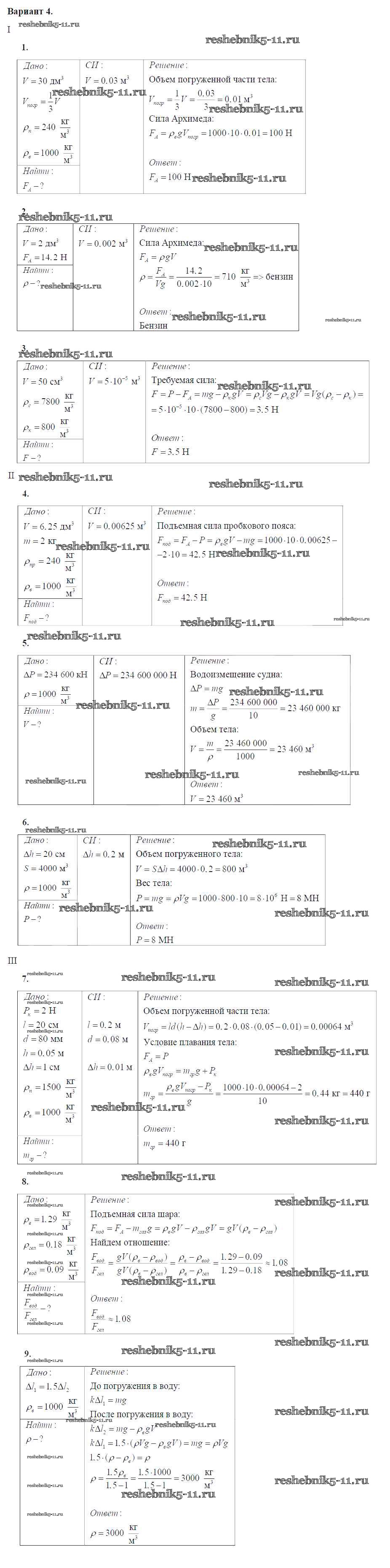 Готовая домашняя работа с ответами по Физике за 7 класс Марон Дидактические материалы Вертикаль Дрофа 2019 ФГОС - КР №-3. Архимедова сила Вариант №4