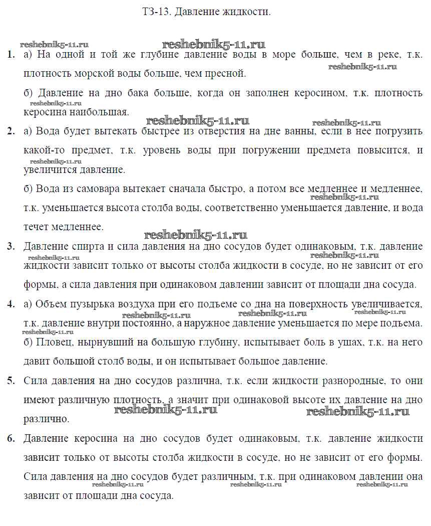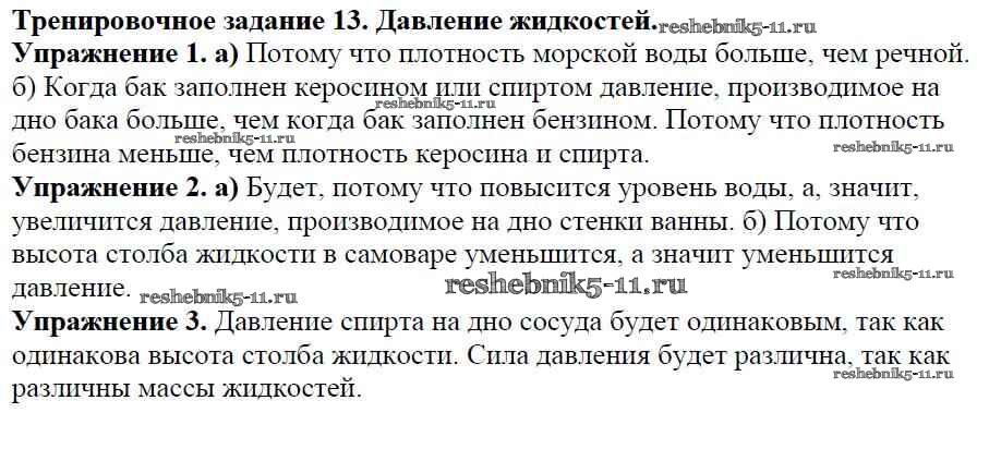 Готовая домашняя работа с ответами по Физике за 7 класс Марон Дидактические материалы Вертикаль Дрофа 2019 ФГОС - Тренировочные задания Задание №13. Давление жидкости