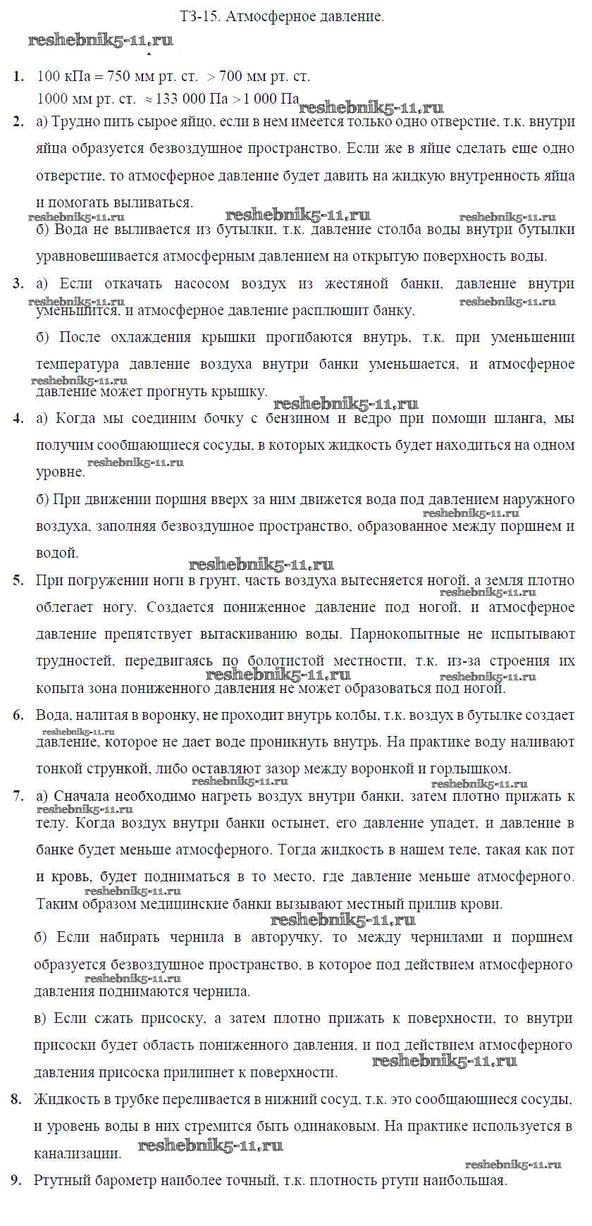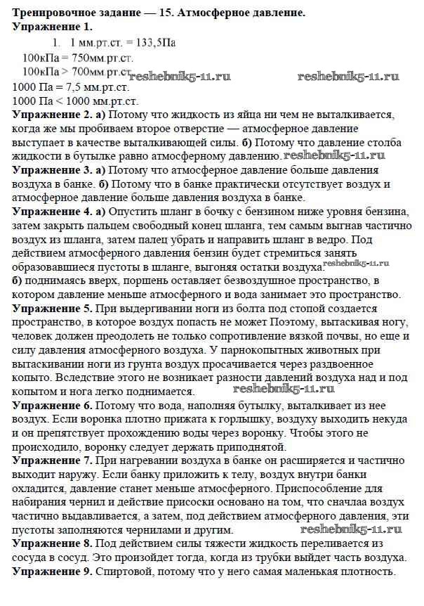 Готовая домашняя работа с ответами по Физике за 7 класс Марон Дидактические материалы Вертикаль Дрофа 2019 ФГОС - Тренировочные задания Задание №15. Атмосферное давление