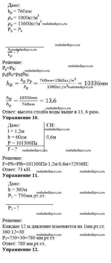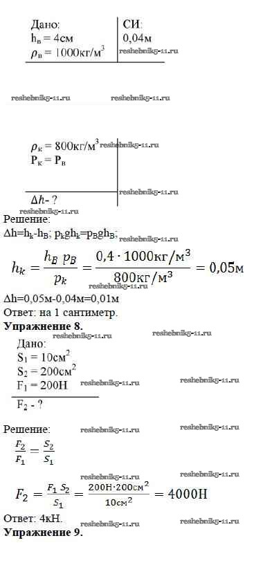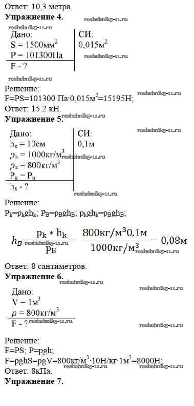 Физика за 7 класс Марон Дидактические материалы Вертикаль Дрофа задание Задание №16. Давление в жидкостях и газах. Расчетные задачи