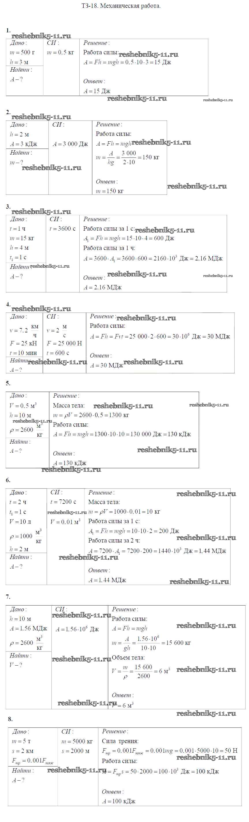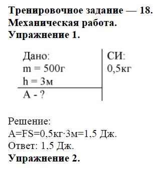Готовая домашняя работа с ответами по Физике за 7 класс Марон Дидактические материалы Вертикаль Дрофа 2019 ФГОС - Тренировочные задания Задание №18. Механическая работа