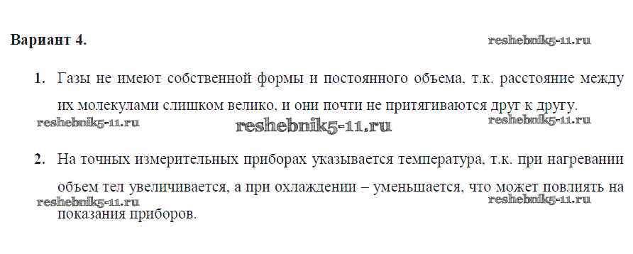 Готовая домашняя работа с ответами по Физике за 7 класс Марон Дидактические материалы Вертикаль Дрофа 2019 ФГОС - СР №-1. Строение вещества Вариант №4