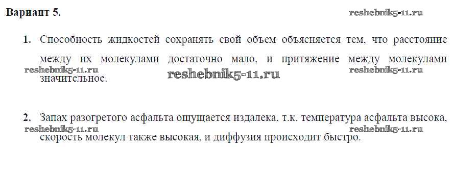 Готовая домашняя работа с ответами по Физике за 7 класс Марон Дидактические материалы Вертикаль Дрофа 2019 ФГОС - СР №-1. Строение вещества Вариант №5