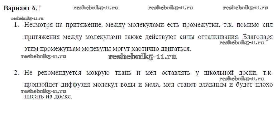 Готовая домашняя работа с ответами по Физике за 7 класс Марон Дидактические материалы Вертикаль Дрофа 2019 ФГОС - СР №-1. Строение вещества Вариант №6